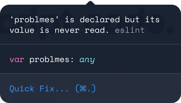 ESLint analyse votre code de manière statique pour y trouver des erreurs rapidement. La plupart des éditeurs de texte le supportent et vous pouvez aussi l'exécuter au sein de votre chaîne d'intégration continue.